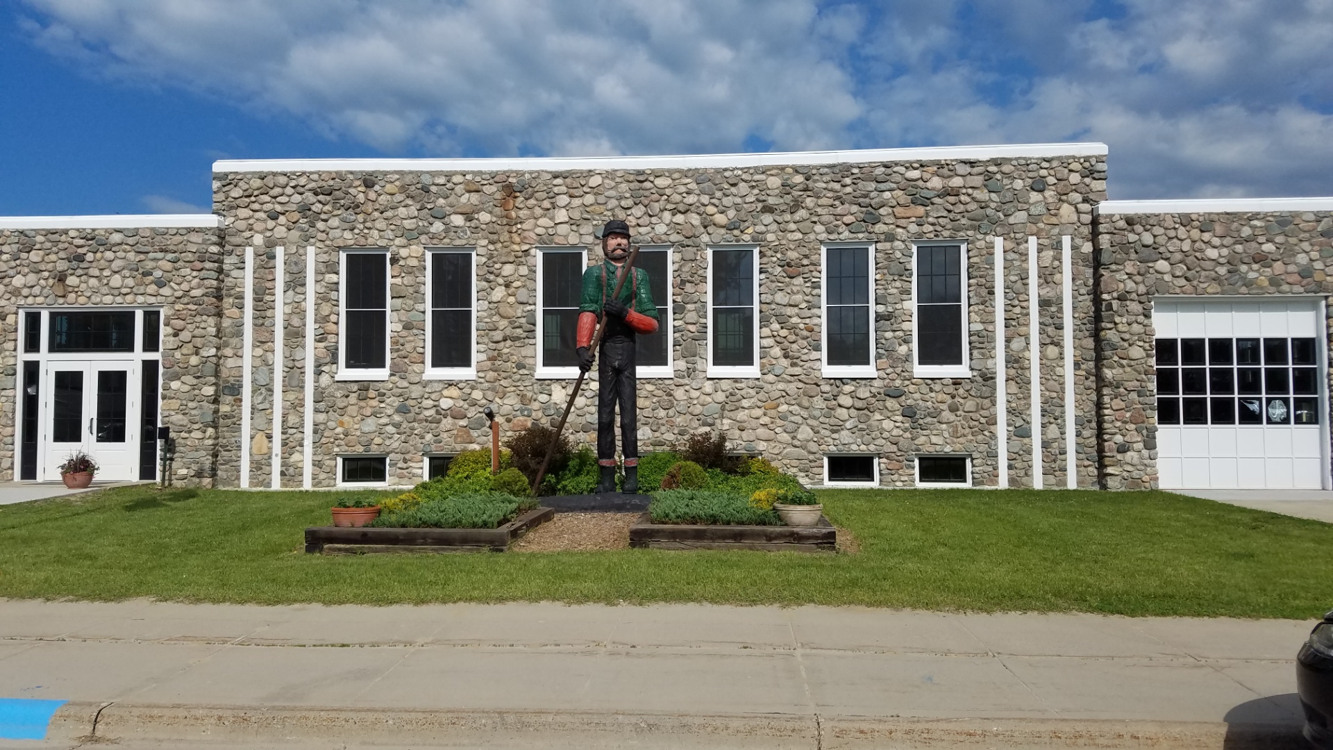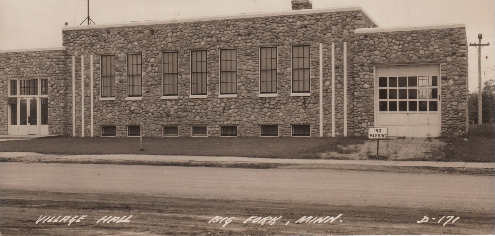 Bigfork City Hall was built by the Works Progress Administration (WPA) in 1936 at a cost of $20,000. It was constructed with an exterior finish of local fieldstone. The attached garage on the north end originally housed the fire trucks. That area later became the library (serving so until about the year 2000). In the basement were a dining room, kitchen, council room. Furnace room, wash rooms and a cloak room.